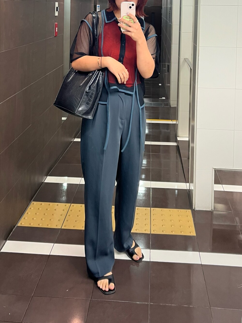 派手な原色はプチプラで冒険することにしてる🍎 MURUAのメッシュトップスはほんとに着回しできるし、まだまだ暑いこの時期に重宝する。 あと、どこいっても色んな人に可愛い!どこのですか?って聞かれる!