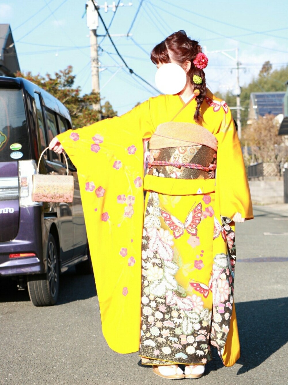 おはようございます ☀ 振り袖 着せてもらって 、 ヘアアレンジしてもろて 、 弟くん の 一眼レフ で パシャリ してもらった ~ 📷 緊張しすぎて 寝れてないけど … ( 笑 ) 幼馴染み の 結婚式 楽しんできます 💒