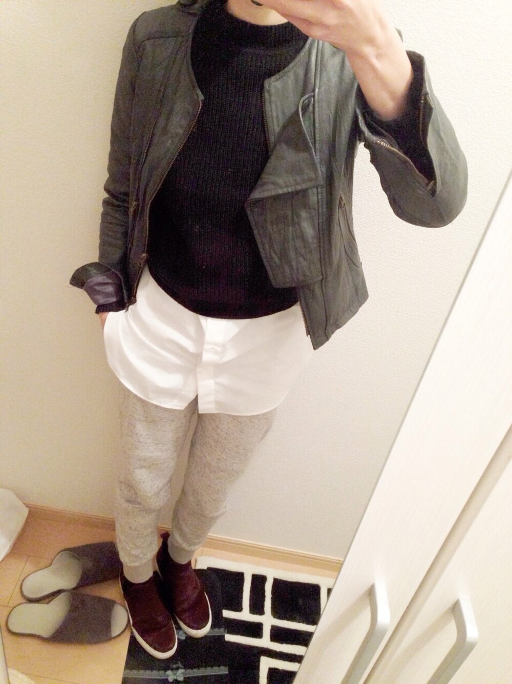 knit…UNIQLO pants…UNIQLO outter…vintage shose…ZARA 長いこと愛用してるライダース。 色と形が珍しくてお気に入りです♡ このシャツ付きタンクが使える使える!笑