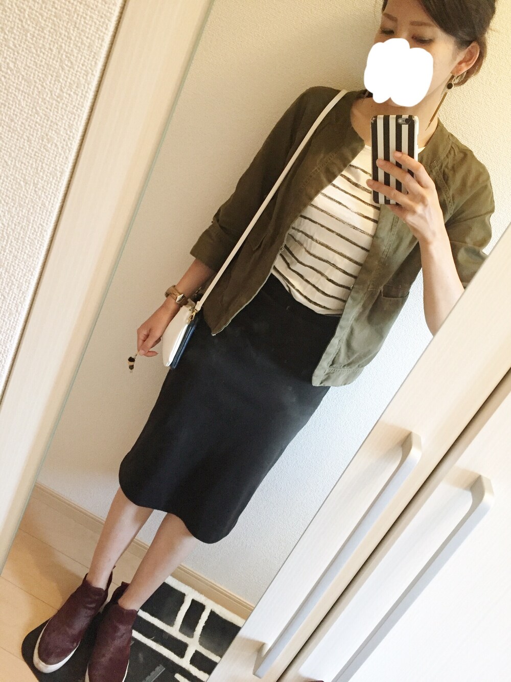 タイトスカートで大人っぽく! カーキとボーダーの組み合わせは最強です♡