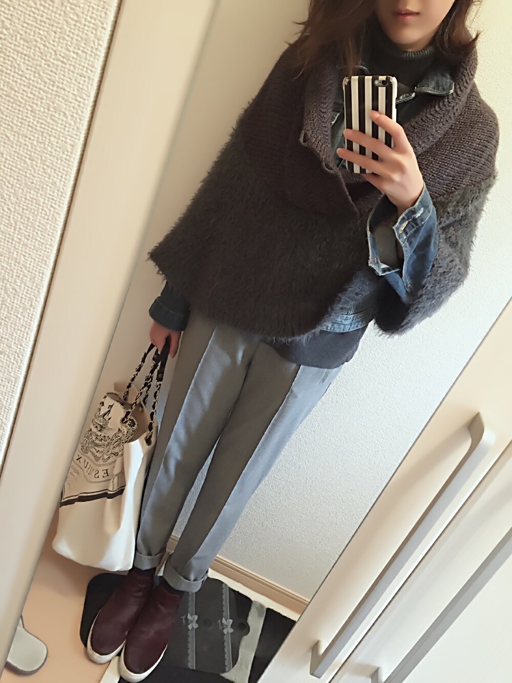 画像加工アプリで美肌モードにしてみたらすごく違和感あるのですが!笑 i have to keep practicing… チャリでお出かけしたのでぬくぬくコーデ!