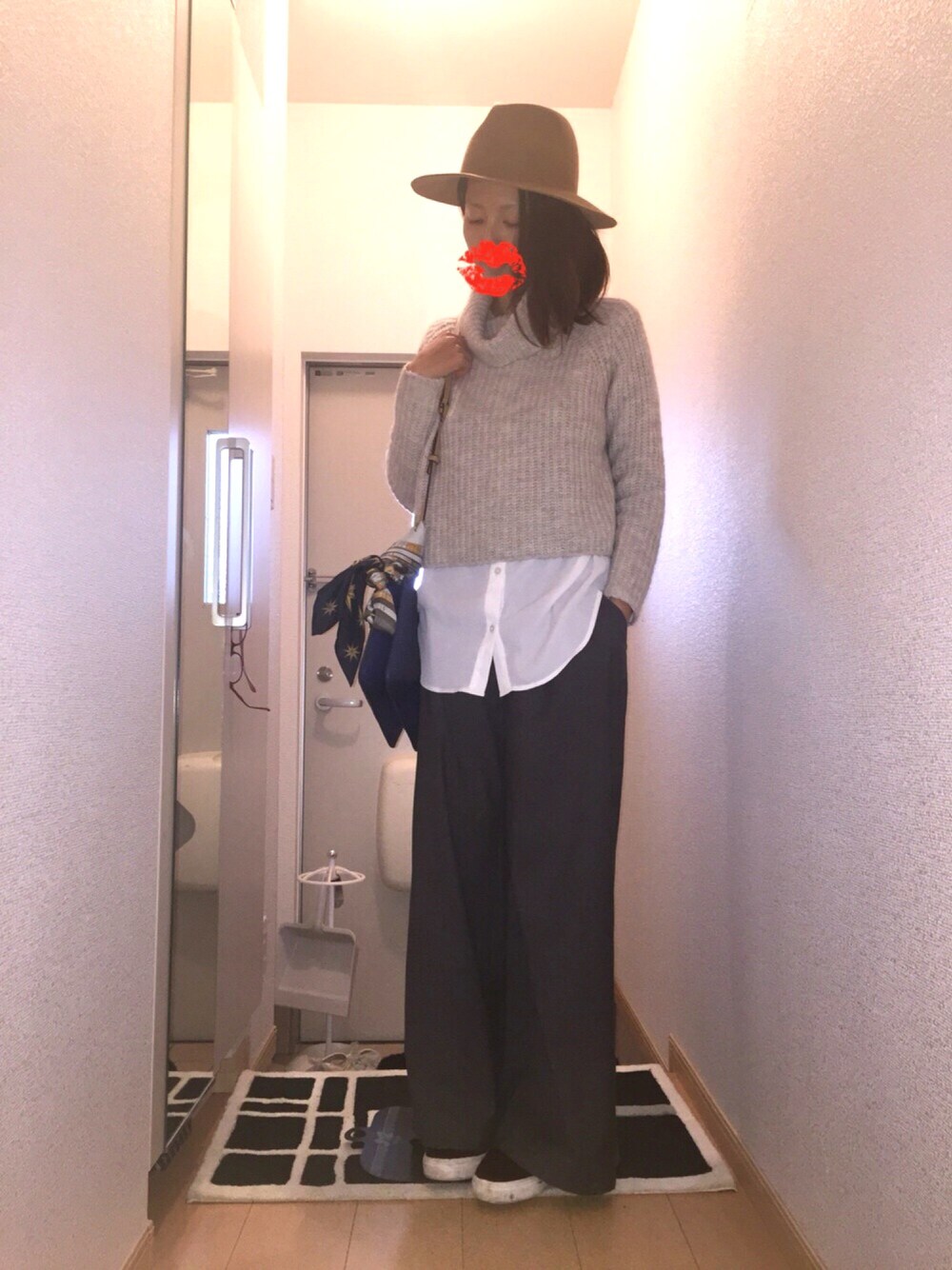 セールで買ったベージュのハット♡ つば広めで雪降ってる日には最高–\(^o^)/笑 スニーカー汚れてきちゃったな…