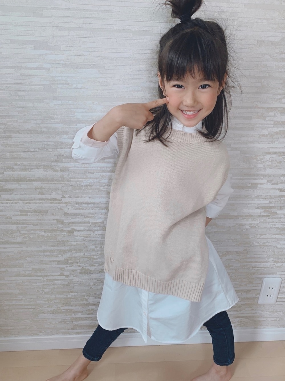 eri-7423のワンピース「【キッズ】ベストSETシャツワンピ7分袖/878706」を使ったコーディネート