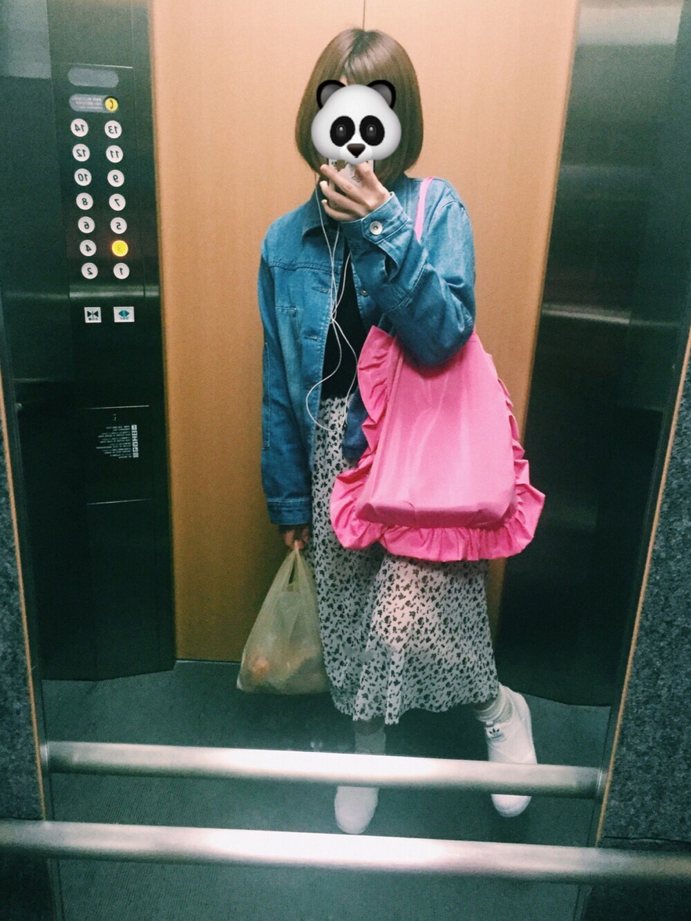 ぱんだせんせいのトートバッグ「_ナイロン フリル トート」を使ったコーディネート