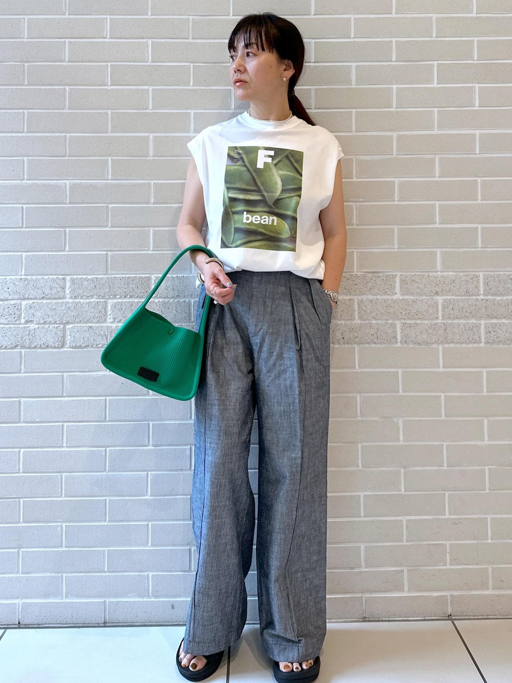 デニムの着回しスタイリング②。F magazineのBeanプリントのタンクトップとグリーンがアクセントになるワンハンドルバッグでシンプルに。デニムですが、ライトなカラーと軽い履き心地、ピンタックが入っているので縦が強調されスタイルアップも叶います。梅雨のようなじめじめした今の時期にも涼しいパンツです。 アクセサリー/ 私物 ✏︎Information ⚪︎JUNのアプリはお気に入りのコーディネートや、ショップスタッフに♡をタップ→フォロー頂くと【お気に入り】タブからご覧頂きやすくなります。 ⚪︎LINE接客はじめました 商品のお問い合わせや在庫確認など、LINEにてお気軽にお問い合わせ下さい。スタッフがお返事をさせて頂きます。 LINEでサロン アダム エ ロぺ ニュウマン新宿店スタッフに相談は【友達だち追加】をタップをして下さい。 <a href="https://lin.ee/PCneJMz" style="background:url(https://scdn.line-apps.com/n/line_add_friends/btn/ja.png); background-size: contain; display: block;width: 116px;height: 36px; margin:.5em 0;"></a> ................................................................ SALON adam et ropé NEWoMan新宿店 〒160‐0022 東京都新宿区新宿4-1-6 NEWoMan 3F 03-6380-1750 営業時間 月-土 11:00-20:30 日.祝 11:00-20:00