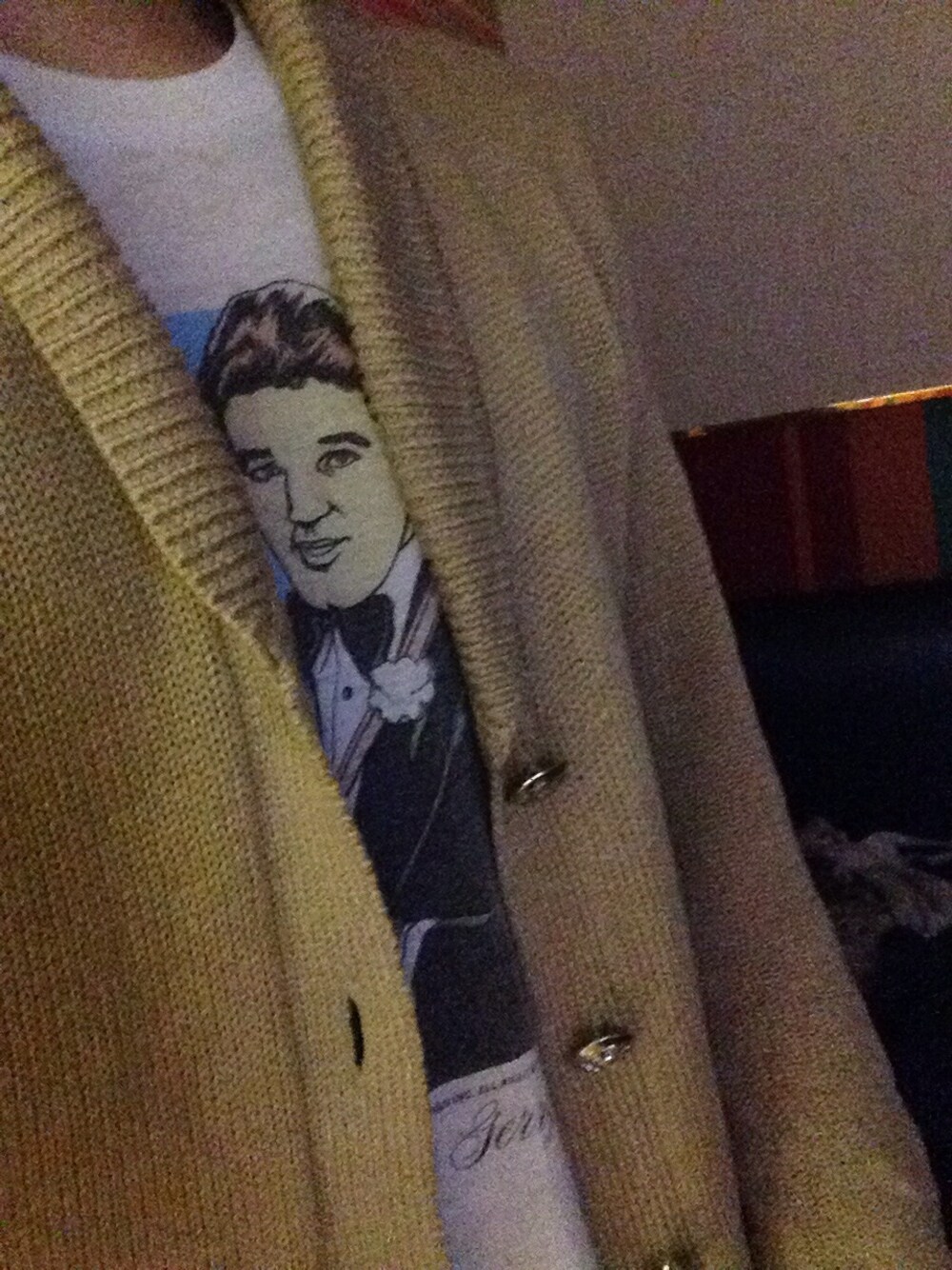 Cardigan:used Tee:used 急な外出 雑に 親友とのカラオケでの1コマ