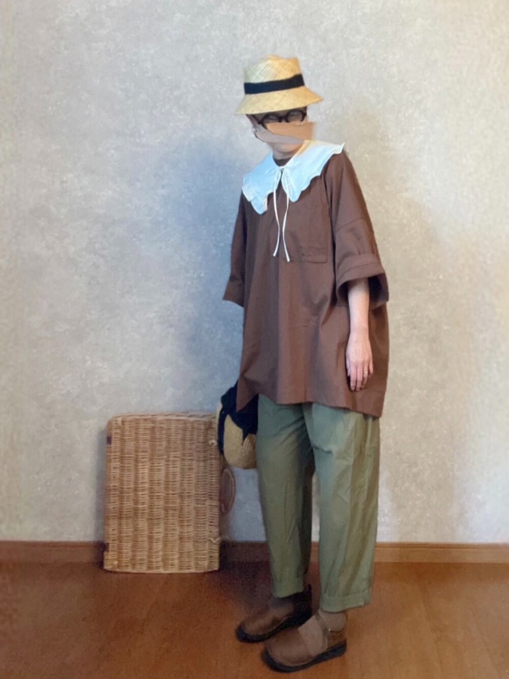 土曜日は曇りがち GUちゃんのワイドフィットT 付け襟したら女子っぽい?
