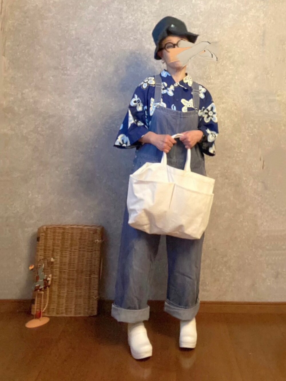 シャツにオーバーオール 合わせただけよきょうのふく。 アチチ💦なので体調にはご注意下さい🍀