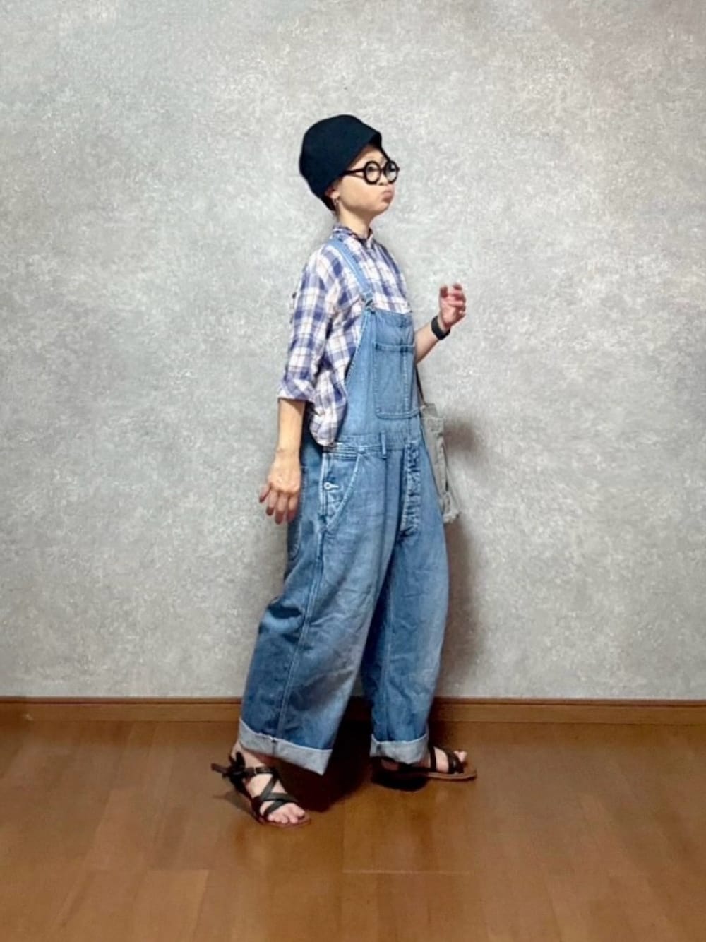 サロペット装着の時ウエストからインナー見えない様に大きめってゆーか長めのタンクトップとかTシャツとか合わせてチラ見え防止しています。