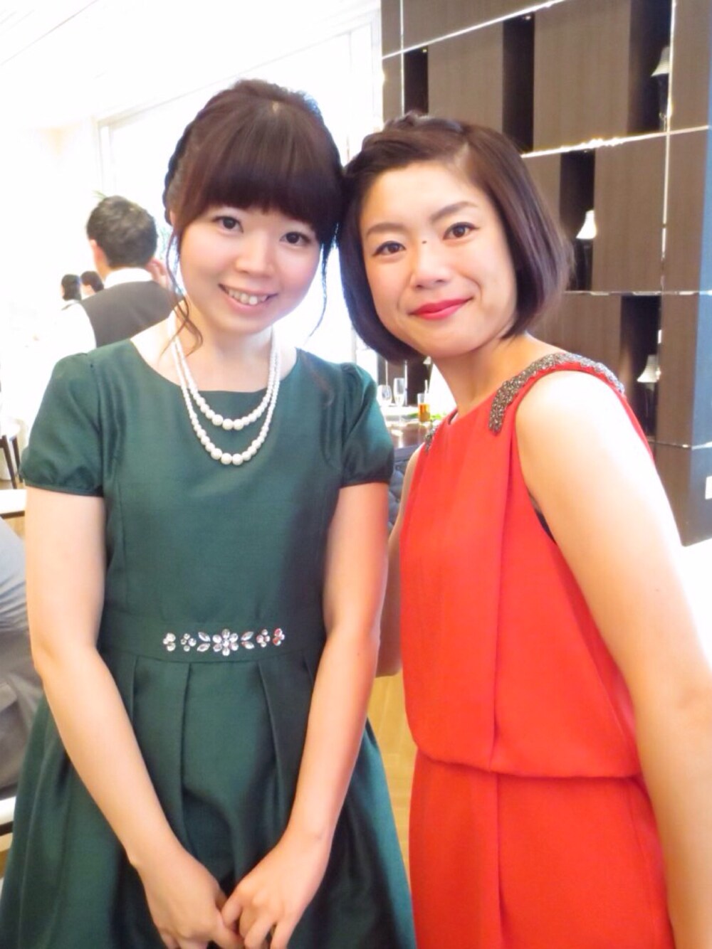 結婚式。友達が赤で一緒にいるとクリスマスカラーo(`ω´ )o