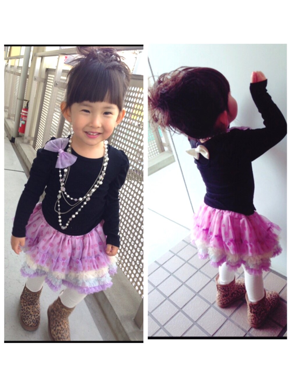 なっち☺︎ 振り返りシリーズ、3歳☆ 紳士服ファッションショーに出る じぃじ と 舞台に立った時の服。 ブーツが左右逆。 舞台上がる前に気づいてセーフ(笑)