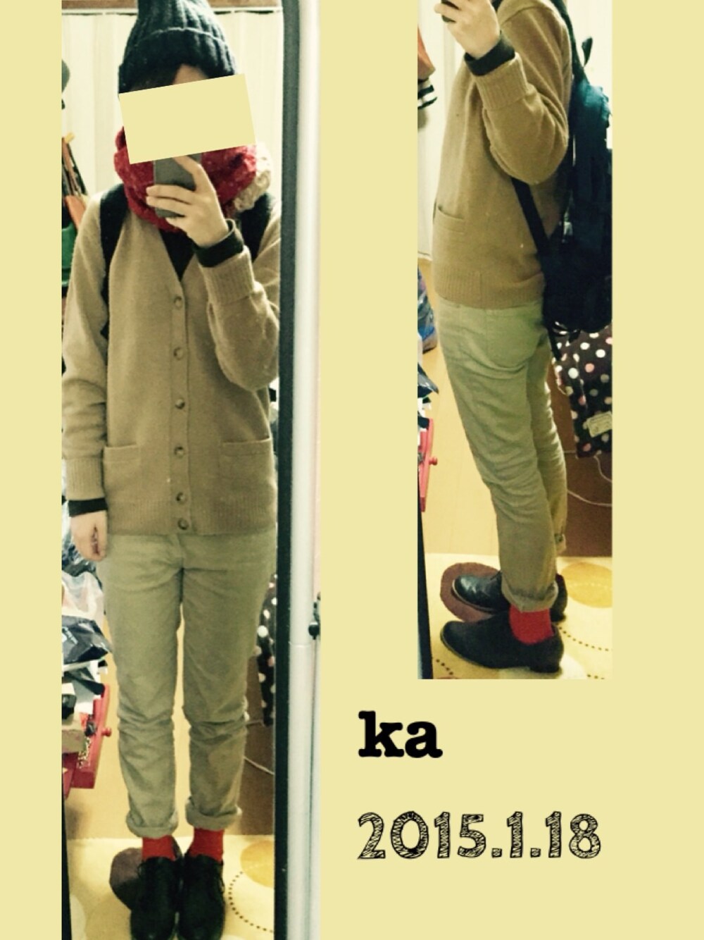UNIQLO靴下屋この画像から似たアイテムを検索できます1690お気に入り (5)00KさんへのコメントNO COMMENTコメントはスマートフォン用アプリからご利用できます着用アイテムUNIQLOUNIQLOカーディガン/ボレロ (ベージュ系)カーディガン/ボレロ探すZOZOTOWNで探す靴下屋靴下屋ソックス/靴下 (レッド系)ソックス/靴下探すZOZOTOWNで探すKのカーディガン/ボレロを使ったコーディネートベージュの組み合わせにしてみました。コメントを表示2015.1.19着用ブランドUNIQLO靴下屋タグ#ベージュコーデ#靴下#カーディガン#ニット帽#マフラーぐるぐる#赤モデル情報女性・157cmショートヘアー似ているアイテムUNIQLO × カーディガン/ボレロ靴下屋 × ソックス/靴下K@7110ta / 157cm / WOMEN / ショートヘアー0コーディネート0フォロワー注目のコーディネートアプリでもっと見るもっと見る