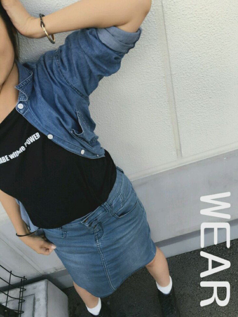 maki のデニムスカートを使ったコーディネート