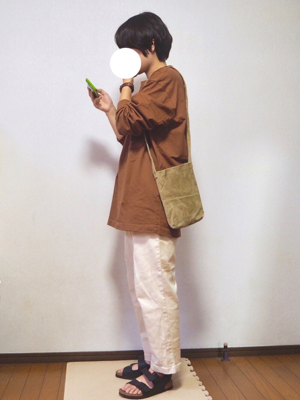 こんにちは、あちょんです☺️ 秋っぽくブラウンのカットソー着ました! 色の組み合わせ結構好きです✨ では☺︎