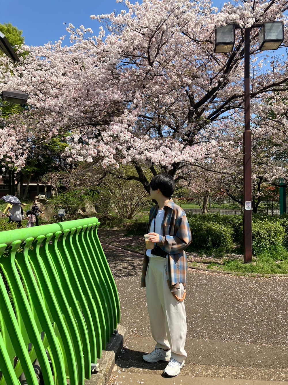こんにちは、あちょんです☺️ 花見散歩コーデ tangtangのt シャツ、auraleeのチェックシャツ かわいい では☺︎