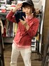 おはようございます♪ 観て頂きありがとうございます😊 赤×赤 やっぱ可愛い❤️ ワイドデニムと合わせようかとも思ったけど、アウターとの絡みもあって今回は白パンで🤍