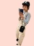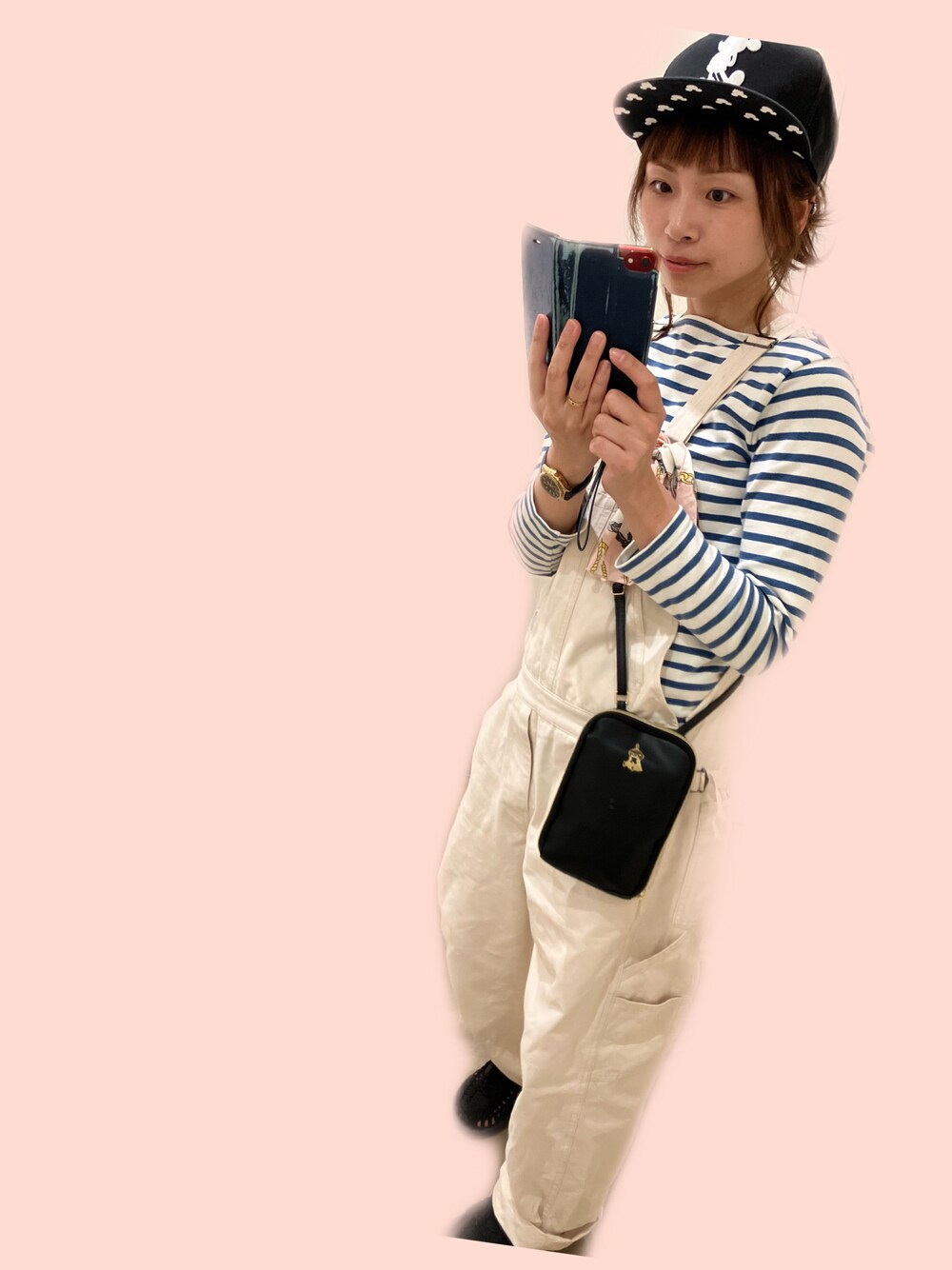 ムーミンのショルダーは雑誌の付録 見えにくいけどアクセントで サロペにスカーフ巻いてみた 2枚目はデコ出しベレーversion