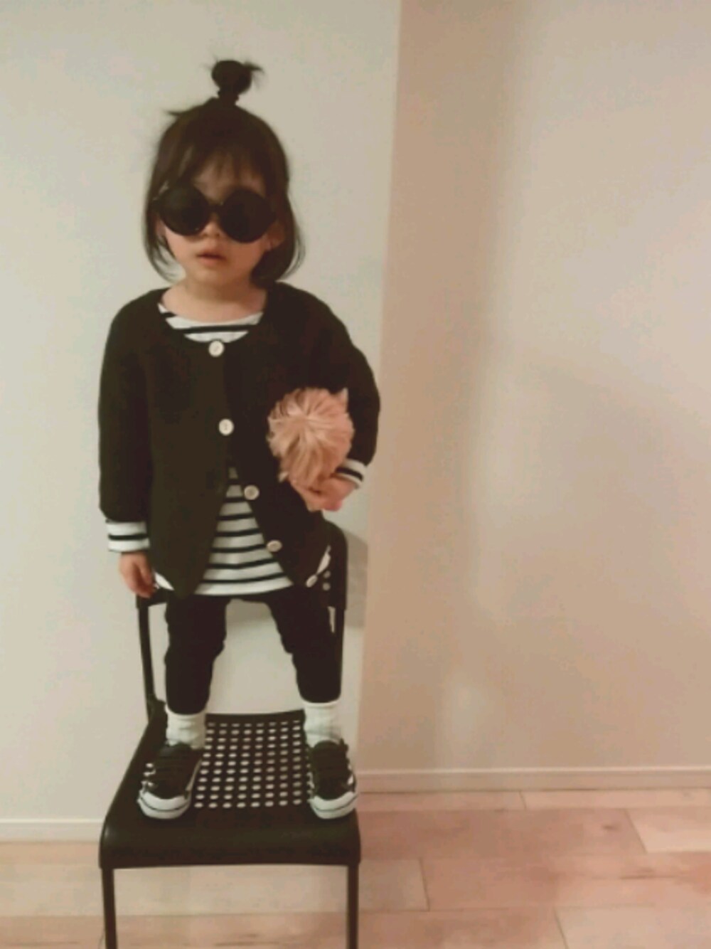今日の保育園コーデ✨ 帰宅後、ダイソーのサングラスをプラスしました🕶 今日もプチプラです😅 毎回同じアイテムばっかりですいません…💧