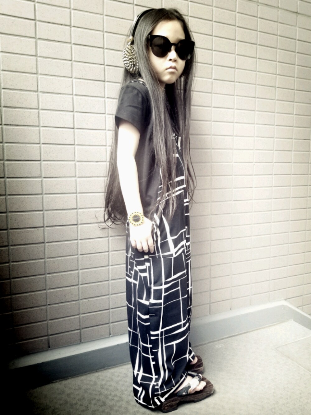 L×Mのサロペット/オーバーオール「幾何学ロングワイドサロペット」を使ったコーディネート