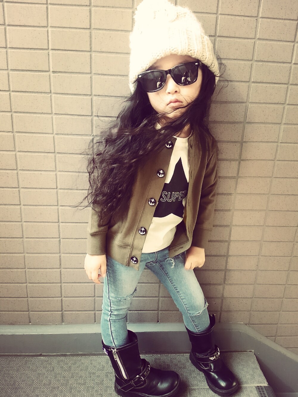 カジュアルゥ。 gapのこのパンツ18-24months用笑。 ブーツ脱ぐとふくらはぎ半分辺りです笑👅✨ ハサミ入れてダメージいー感じになったからギリギリ迄履かせてたけどもぉ可哀想かな😅😅😅 着回し楽コーデ。 instagram→black-butterfly7192