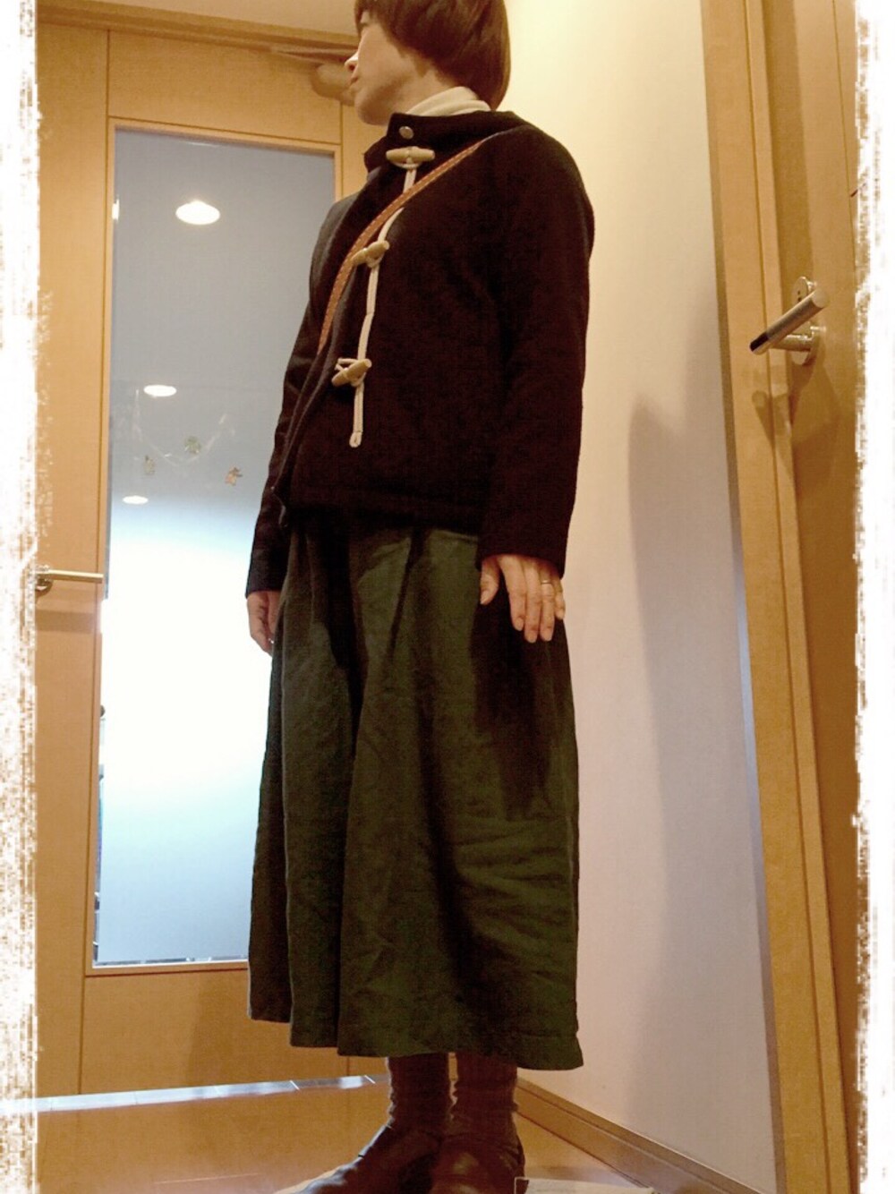 71saoのダッフルコートを使ったコーディネート
