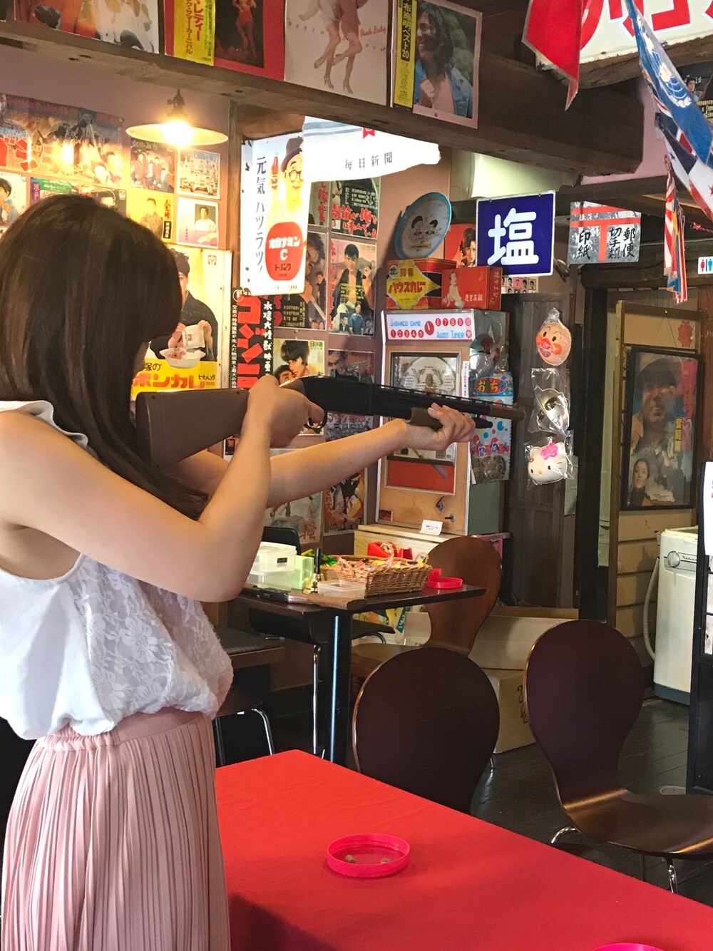 駄菓子屋さんで射的🐶🌸 パラッオパンツかわいい♡