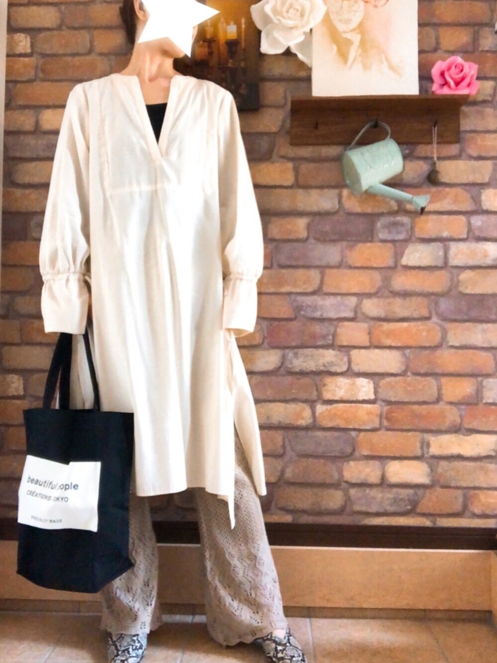インナー長袖ならブラウスでも イケちゃう暖かさに⸜(*ˊᵕˋ*)⸝アリガトウ♡ COTORICAのクロシェ編みパンツ シルエットがキレイだから 脚長効果ありが嬉しいーな 全く見えてないヘアアクセが最近 メチャクチャお気に入り♡♡ 本当にかわいーの°˖✧(⁰▿⁰)✧˖° シューズもワントーンに合わせて パイソンでバ柄入してみました。