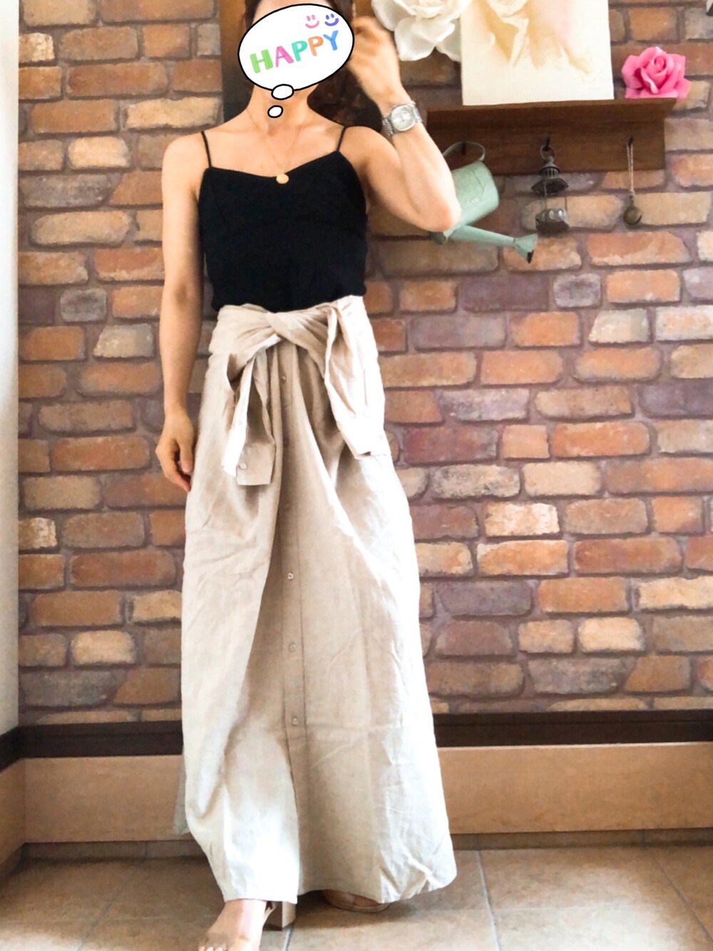 Rodeoのリネンシャツワンピを スカートに(◍˃̵͈̑ᴗ˂̵͈̑)ァ,、 メチャクチャかわいーな♡♡ トップス変えてイロイロアレンジ リネンだから涼しいょ