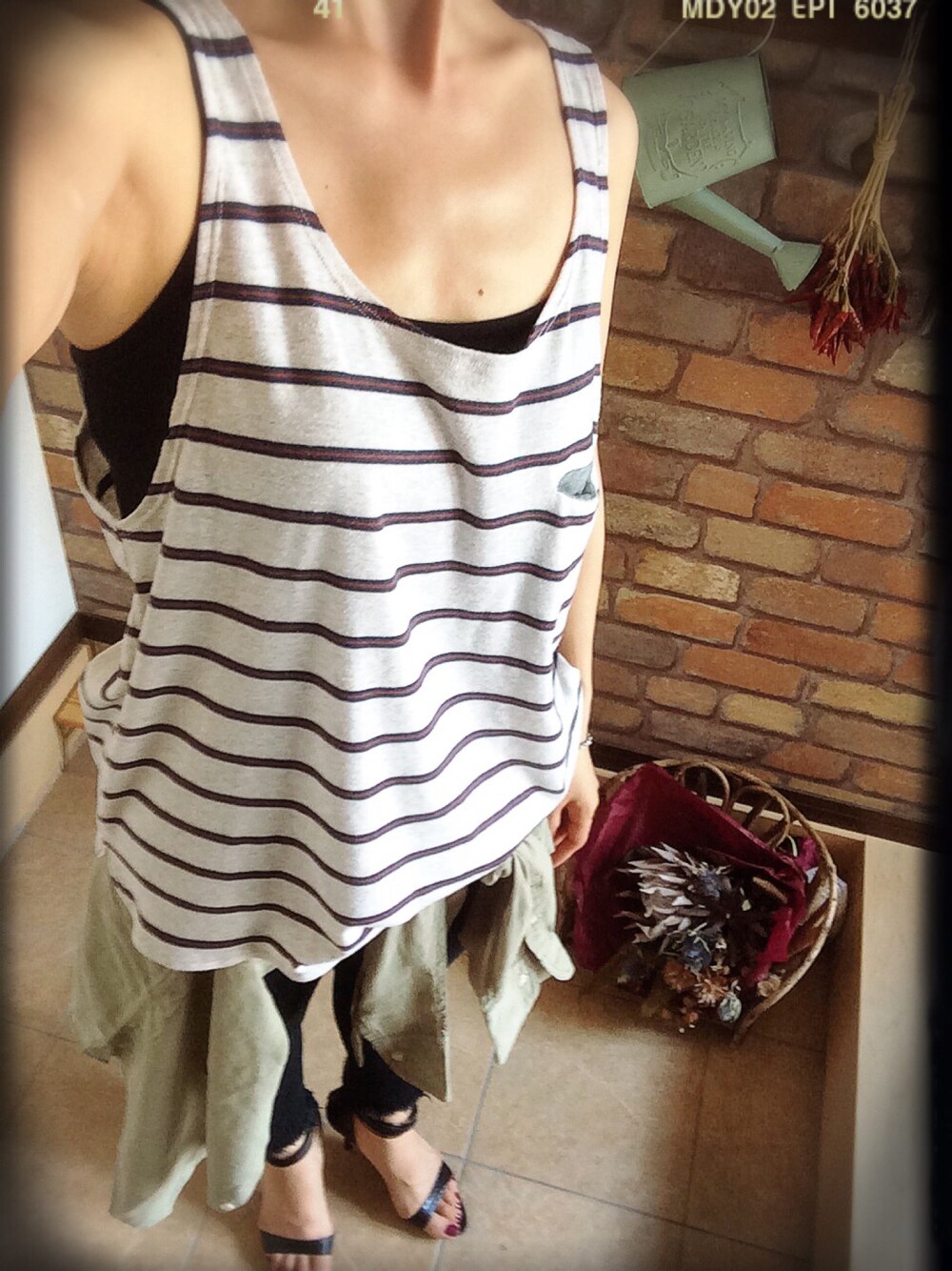 Hi_kaのタンクトップ「【Casual】ポケットボーダーT/T」を使ったコーディネート