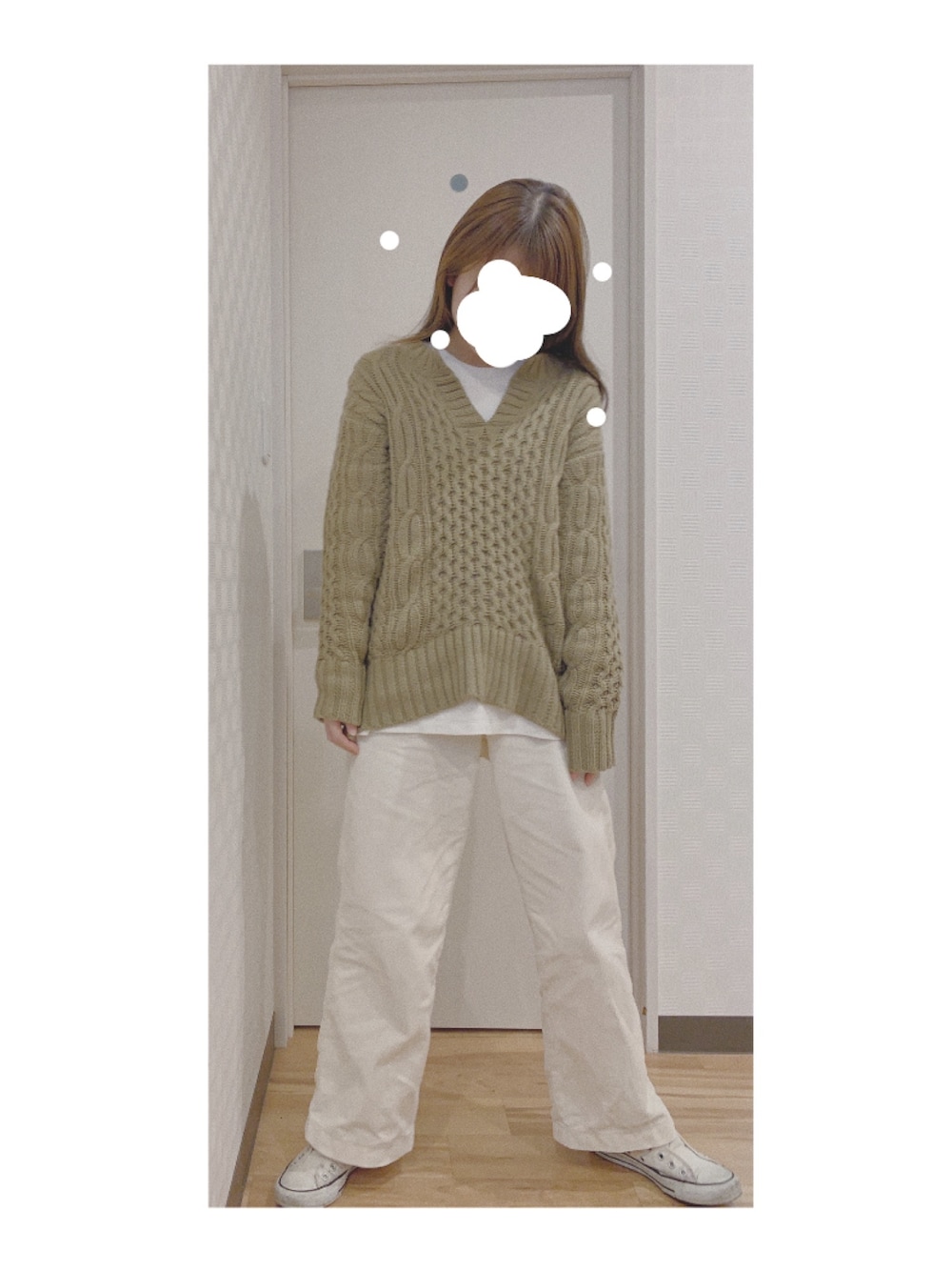 natsumiiiiのニット/セーター「キーネックケーブルニットプルオーバー」を使ったコーディネート
