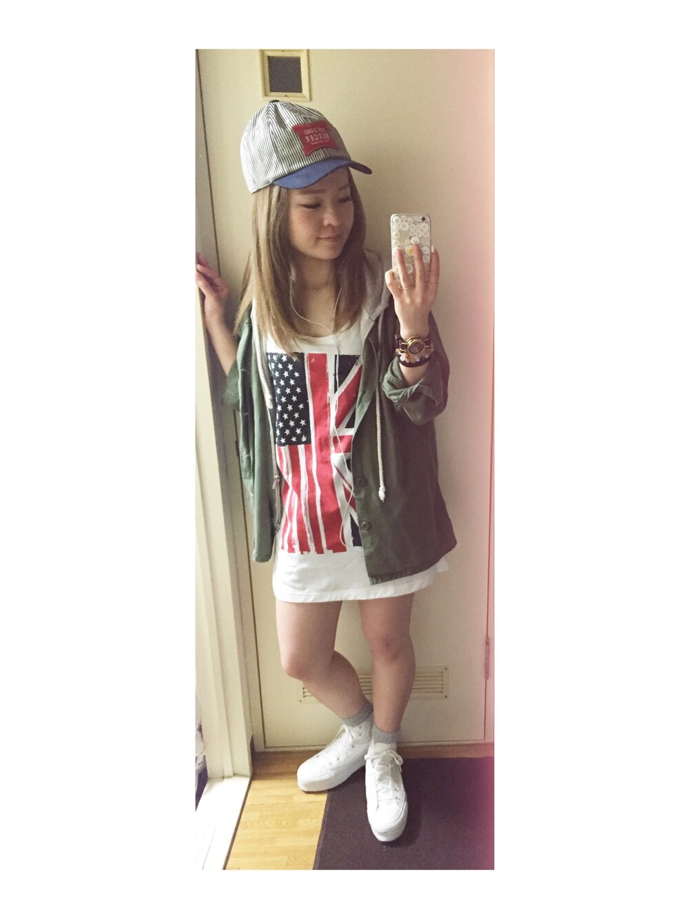 The American !!🇺🇸 メンズ物ですが H&Mで一目惚れ…😍🙌🏻 さいきんキャップ ばっかり〜〜 コーデの幅を 広げなくては…