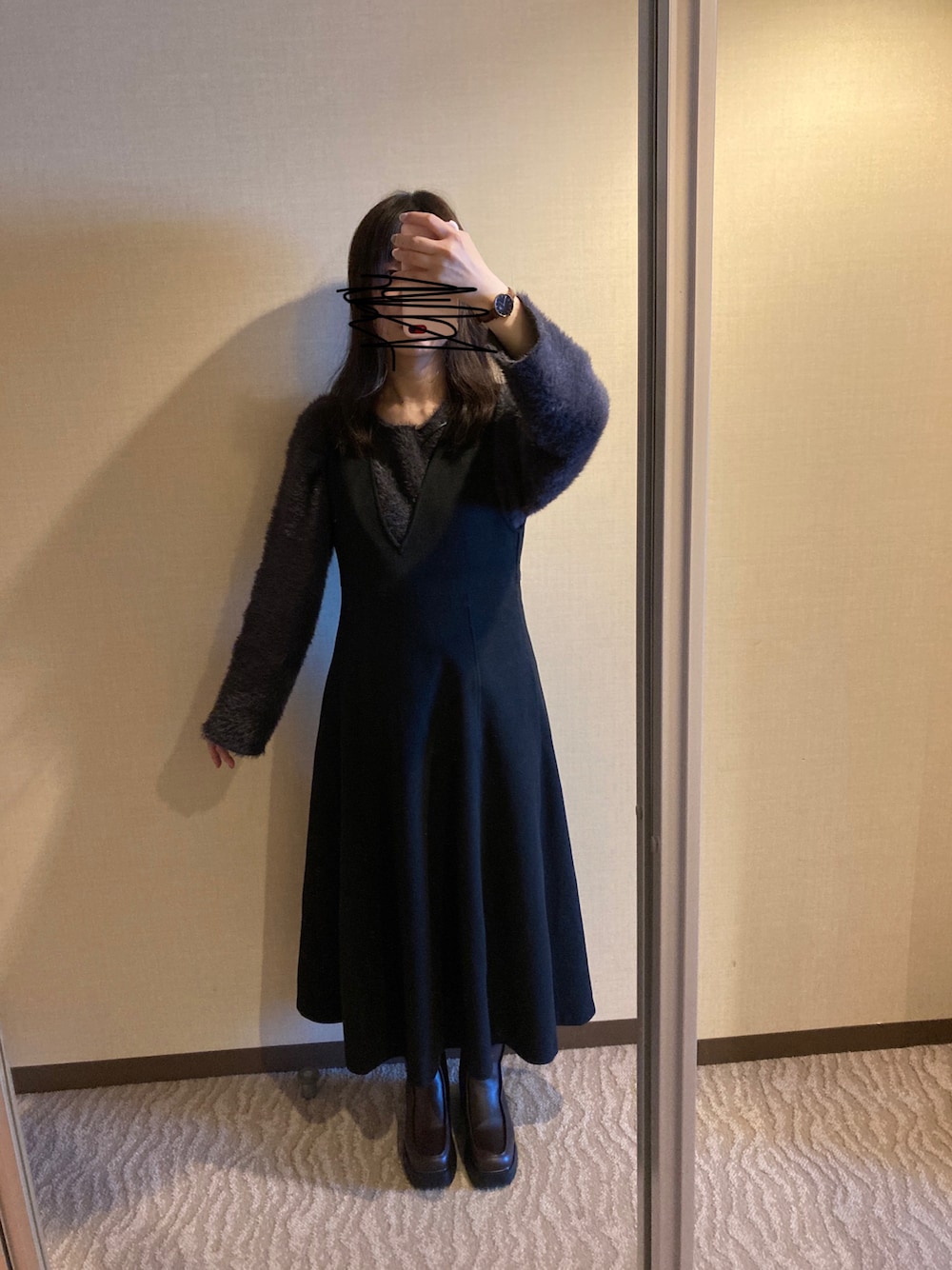 ユニクロのお値下げワンピース👗 フィットアンドフレア♡ ワンサイズ大きめなので、ニットをin出来る🧶