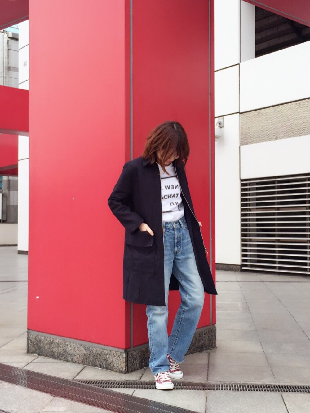 シバタのステンカラーコートを使ったコーディネート