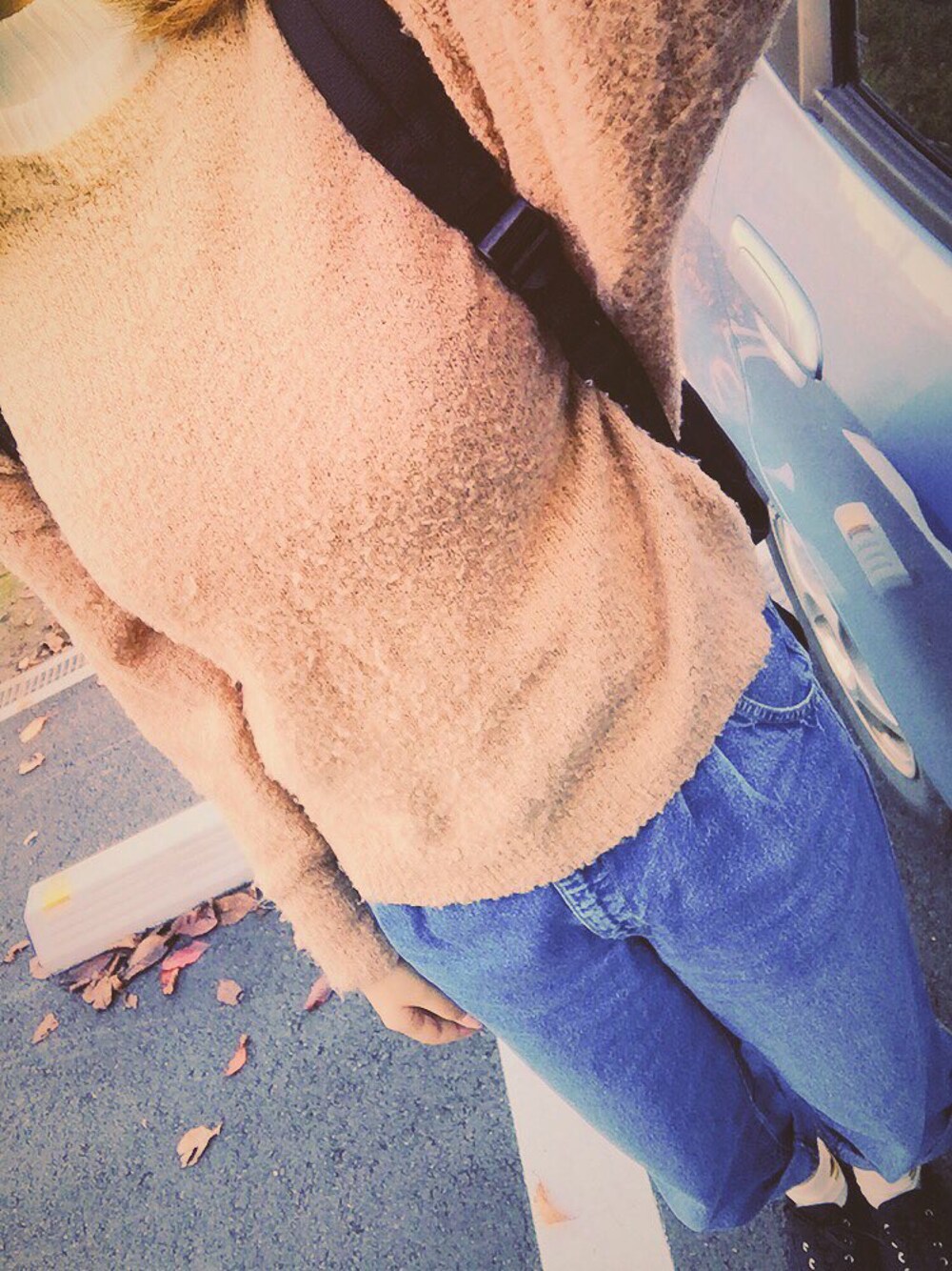 ホワイトとベージュのニットを 合わせて女の子らしさを出しつつ、 下はデニムパンツできちっと◎ 秋らしく仕上げてみました( ˊᵕˋ )♡