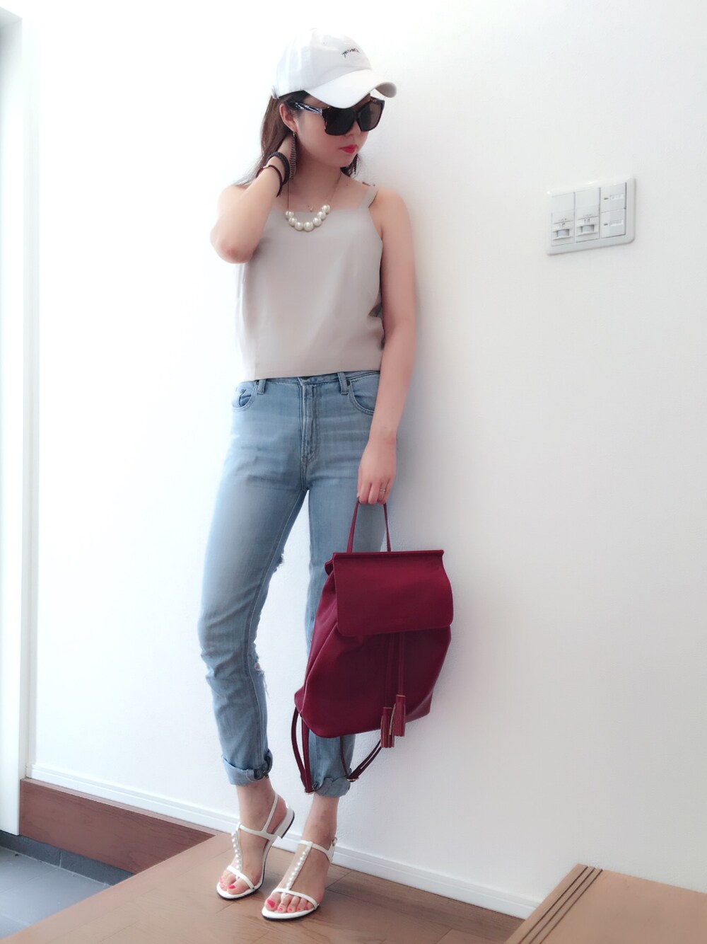 こんばんは😆💕 昨日も沢山のいいね、セーブ ありがとうございます😍🎵 日々感謝でいっぱい❤️🙏 皆様はオリンピック 見ておられますか〜❤️?? 私スポーツ全く出来ないので 今までは興味なかったんですけど… 今年は何だか気になってしまって ちょこちょこ応援させてもらってます✨ 同世代の方が頑張ってるの見ると 自分も頑張ろうって思えます❤️😆 と考えていたらカジュアルなコーデ したくなっちゃいました😂💕笑 バッククラッシュデニムに グレーベージュのキャミトップス スラッシャーのキャップを 合わせたサマーカジュアルコーデ^ ^🎵 カジュアルコーデにも EGOISTさんの赤リュックを ポイントでプラス✨😍 どんなコーデにも合うし 元々シンプルなコーデ多いから ポイントになるので このリュックめっちゃ使える😆❤️ あえてネックレスとサンダルに パールを持って来て女らしさも ちょーっとアピール😄💦笑 ヘアーは後ろにボリュームくるように ハーフアップにしました^o^✨ お盆は仕事が忙しくて なかなか皆様のコーデチェック 出来ないかもしれませんが またお邪魔させて下さいね😍💕🎵
