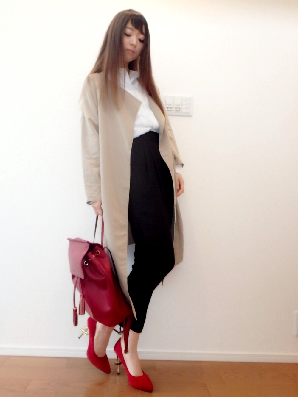 おはようございます☀ いつもいいね、セーブありがとうございます❤️ 白シャツにテーパードパンツの シンプルコーデを着回し〜🎵part1 シンプルなトレンチジャケット さし色に赤で遊び心をプラス✨笑 メイクは薄めでナチュラルに! ヘアーもストレート✨ 前髪だけ少しカール! 前髪ウィッグ買いました💕 なかなか気に入ってるけど 遠目やと微妙ですかね。笑 毛質もいいしリネアストリアの ウィッグにハマりそうです❤️