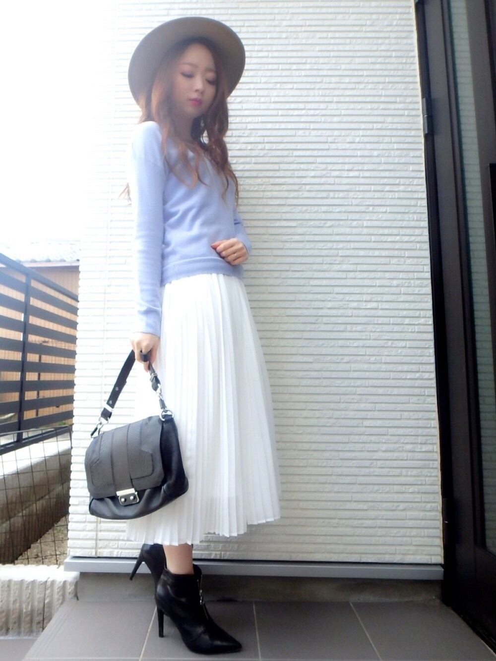 おはようございます☀ 中々画質良く撮れないなぁー。 撮り方変えたいなぁー。 くすんだパステルカラーが 春は着たくなるんです。笑笑 肌触りのいい素材のニットに プリーツワンピースを スカートとしてコーデしました❤️ バッグとブーツをレザー素材で統一! メイクはピンク系✨ 目元もした目尻にピンク入れて 春っぽくしました👍
