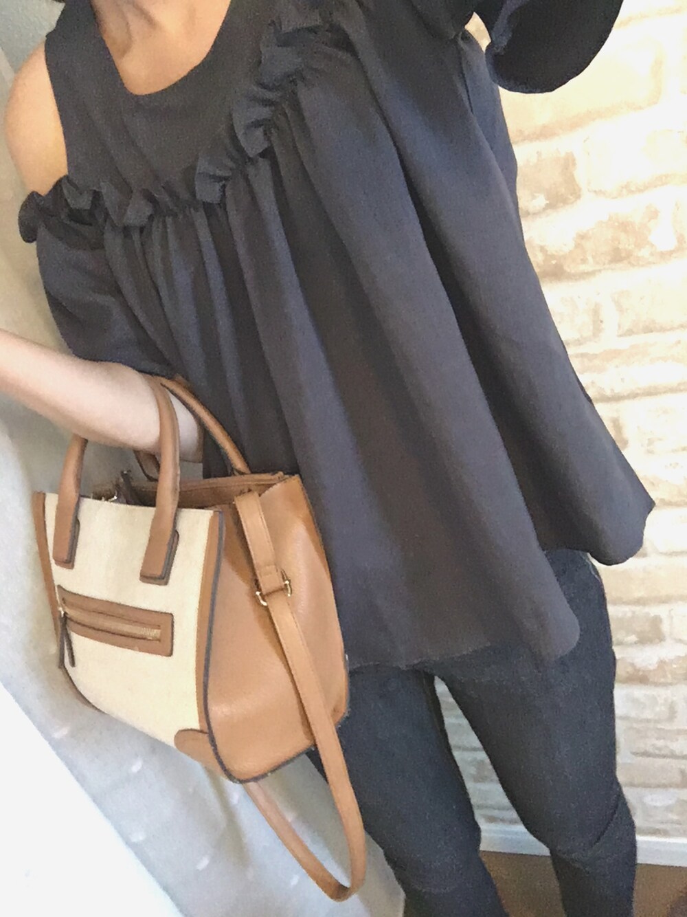 むつのTシャツ/カットソー「オープンショルダーフレアブラウス」を使ったコーディネート