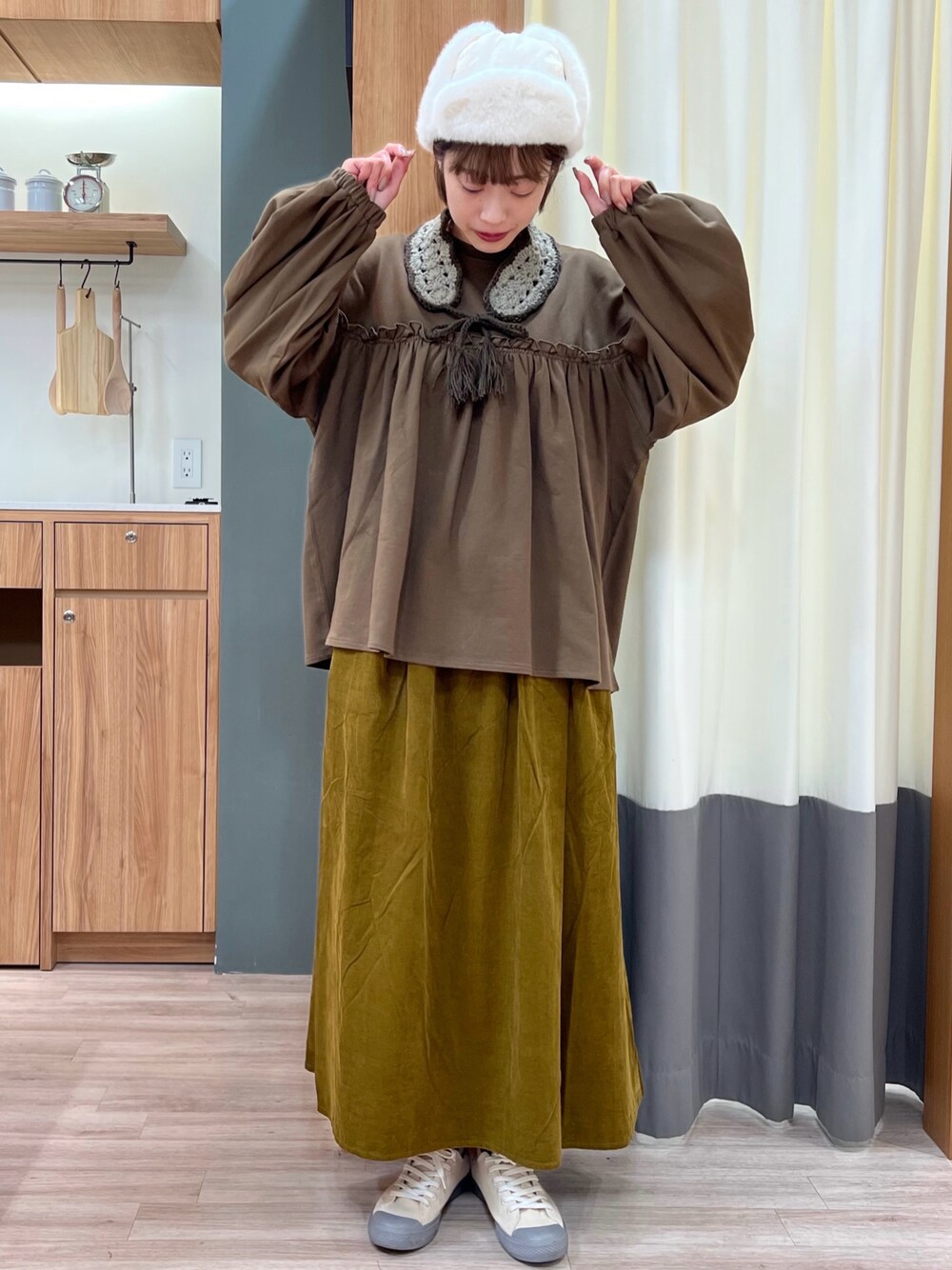 ギャザーのデザインが可愛いトップスは 肌触りが柔らかい裏毛なので着心地の良く 抗菌防臭加工素材なのでお手入れも簡単👌🏻 細コーデュロイ× Aラインのスカートは 履いてみるとシルエットがとても綺麗で カジュアルやキレイめなど幅広く着こなせます🗒ᝰ✍🏻 ̖́-