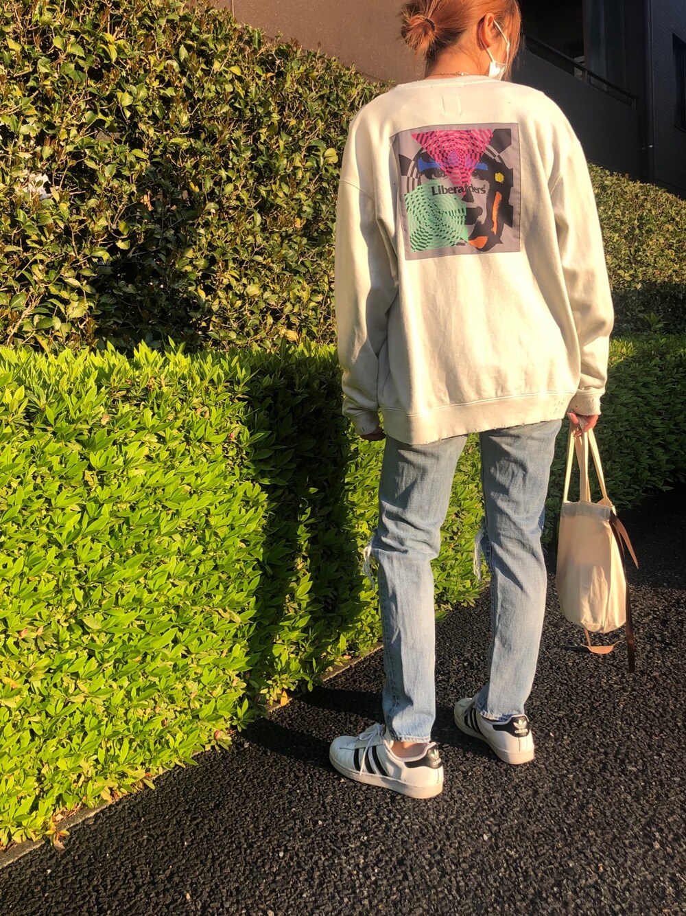 最近買った中で1番お気に入りのLiberaidersスウェットです〜 この服にもストーリーがあって、そういうところもすきですね