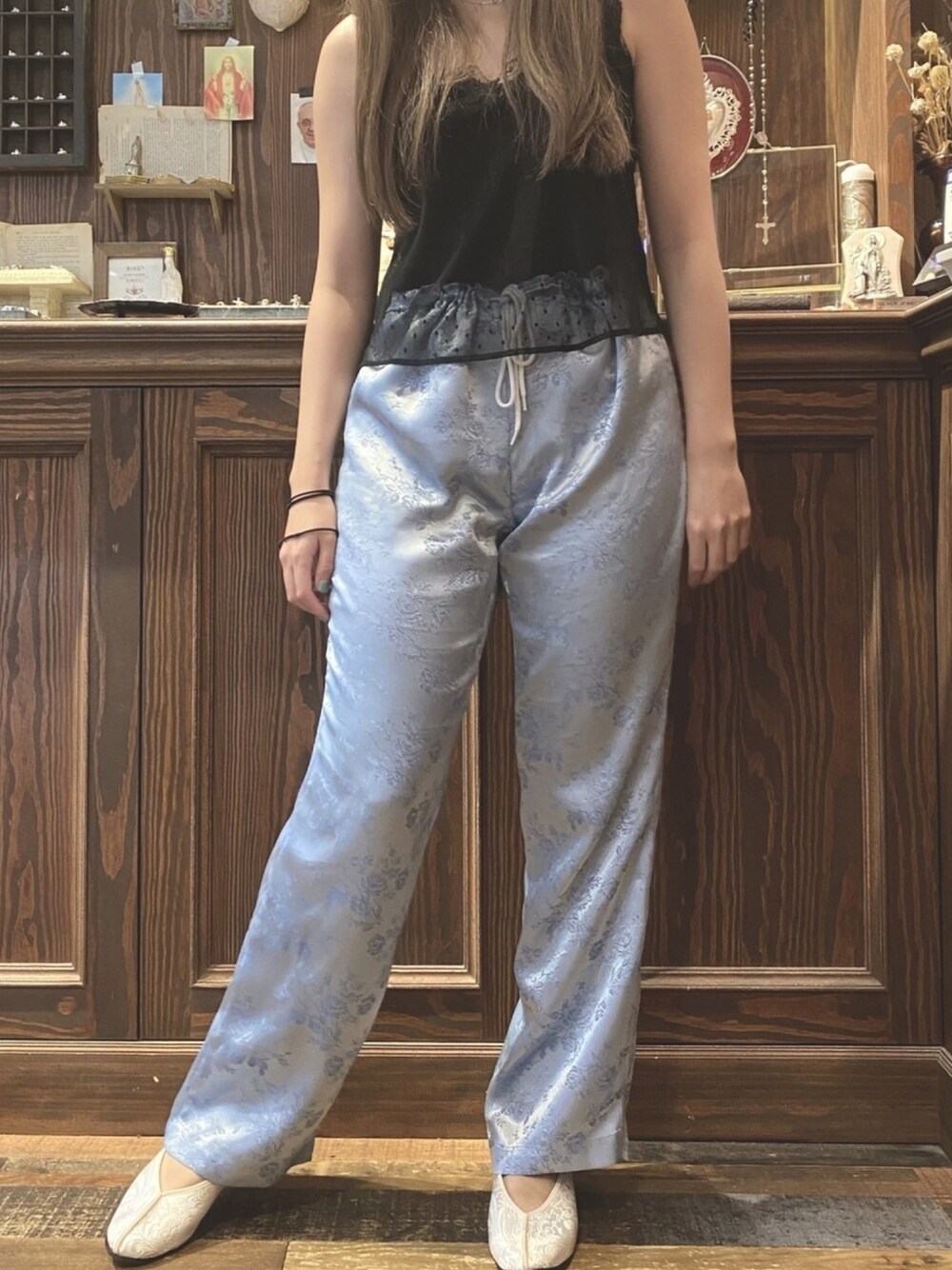 サテンパンツの柄も色もツボ!