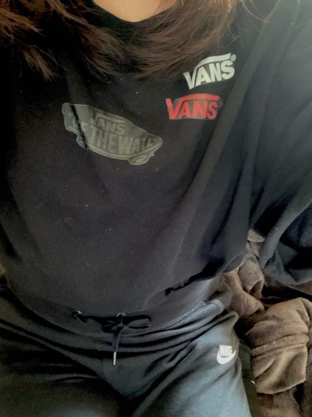 手作りTシャツにスウェットパンツ ステイホーム感まんまん Tシャツ着ているのにこたつはまだ片付けられていない 黒Tにホコリもついている 気にしない何故ならおうちだから