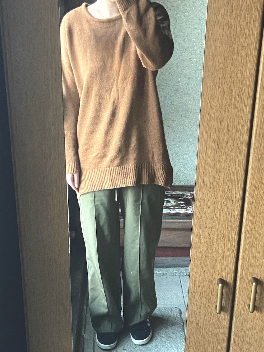ブラック系のスニーカーを着用したレディースの秋コーディネートの1枚目の写真