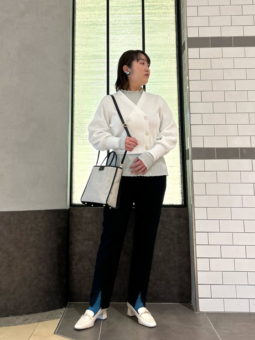 Hori.A(ノーリーズ&グッドマン京王聖蹟桜ヶ丘店)のカーディガン/ボレロ「《手洗い可能》片畦ダブルVネックカーディガン」を使ったコーディネート