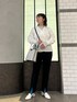 ダブルのボタンの合わせがジャケット風なカーディガンはトレンドのショート丈 程よくカッチリ見せてくれるのでちょっとしたお出かけにもオススメ ストレッチの効いたジョーゼット素材を使用したスリットパンツは、とにかくラクで2色買いされる方も多いアイテム オケージョンからデイリーまで幅広く使っていただけます リアルバイコーデです◎ [着用サイズ] カーディガン:38 カットソー:38 パンツ:38