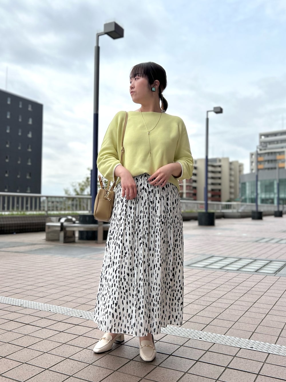 カーブ袖ニット+割繊プリーツスカートの王道ノーリーズコーデ 上下とも楽チン&ウォッシャブルなのにキチンと見えを叶えてくれるマストバイアイテムです◎ 足元はヒール・スニーカー問わず合わせていただけます 今年のカーブ袖ニットは袖口の配色アクセントが可愛いポイント [着用サイズ] ニット:38 スカート:38