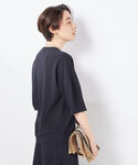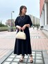 ジョーゼット素材を使用したセットアップはストレッチが効いていてとにかく楽チン!(本当に着心地◎でした!) 通気性もよくシワにも強いのでデイリー使いにもピッタリです 程よい厚みがあるので身体のラインを拾い過ぎずキレイなシルエットを演出してくれます 1セット持っておくとデイリーからオケージョンまで安心なアイテムです [着用サイズ] プルオーバー:38 スカート:38