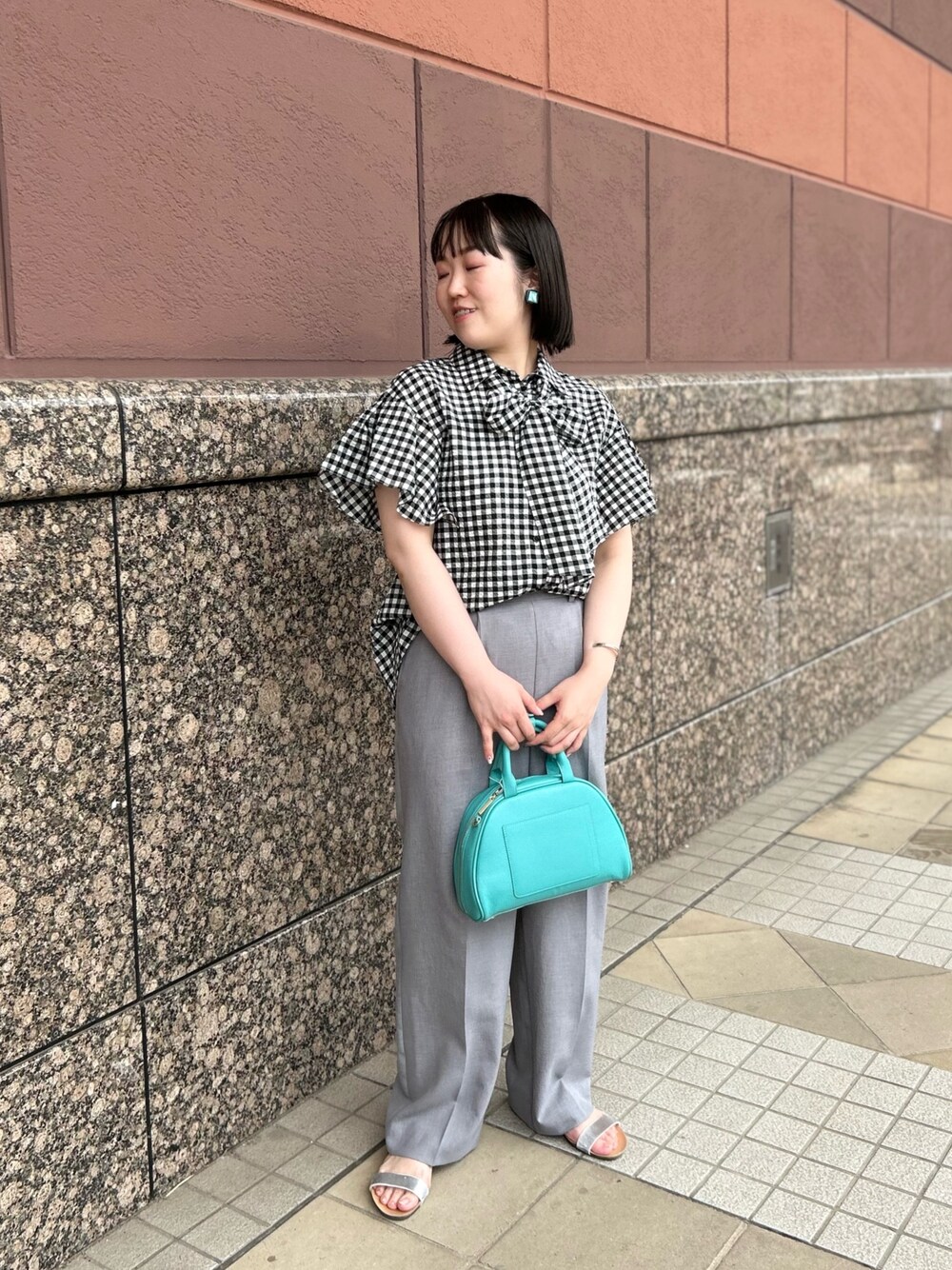 人気のラッフルリボンブラウスのチェック柄が入荷しました! とにかく軽くて涼しいこちらのアイテムはこれからの夏本番にピッタリ◎ 二の腕をしっかり隠してくれるのも嬉しいポイントです 胸元のリボンを取り外せば、甘めが苦手な方でもシンプルな前開きシャツ・羽織として着ていただけます グレーのワイドパンツはリアルバイ! サラッと楽なのにキチンと感もある万能アイテムです◎ ウエストゴムなので普段の1つ下のサイズがオススメです [着用サイズ] ブラウス:38 パンツ:36