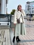 華やかなフレアシルエットが可愛いタフタワンピースは、上半身のスッキリ感と下半身のふんわり感が絶妙なアイテム ハリ感のある素材で程よく体型カバーしてくれる優れものです インナーのリブニットは高すぎないハイネックで首元スッキリ◎骨格ストレートさんにもオススメです ウォッシャブルのホワイトダウンを合わせて、大人のちょっとそこまでお出かけコーデに (ニットとワンピースはリアルバイです!楽チンで可愛くてお気に入り◎) [着用サイズ] ダウン:38 ニット:38 ワンピース:38