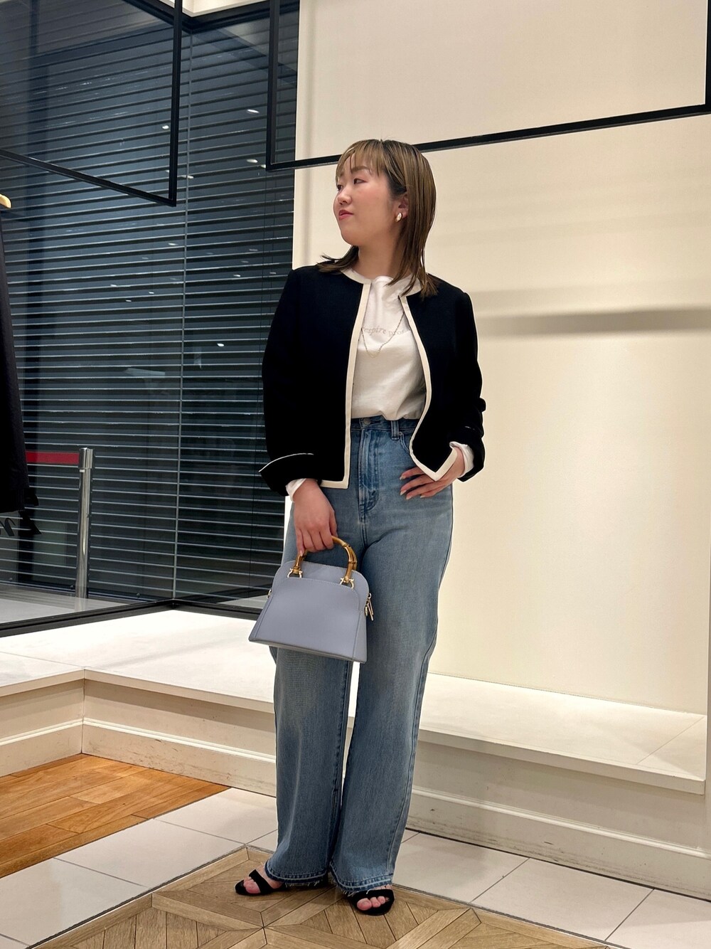 Hori.A(ノーリーズ&グッドマン京王聖蹟桜ヶ丘店)のノーカラージャケット「◇【WEB限定】配色ノーカラージャケット」を使ったコーディネート